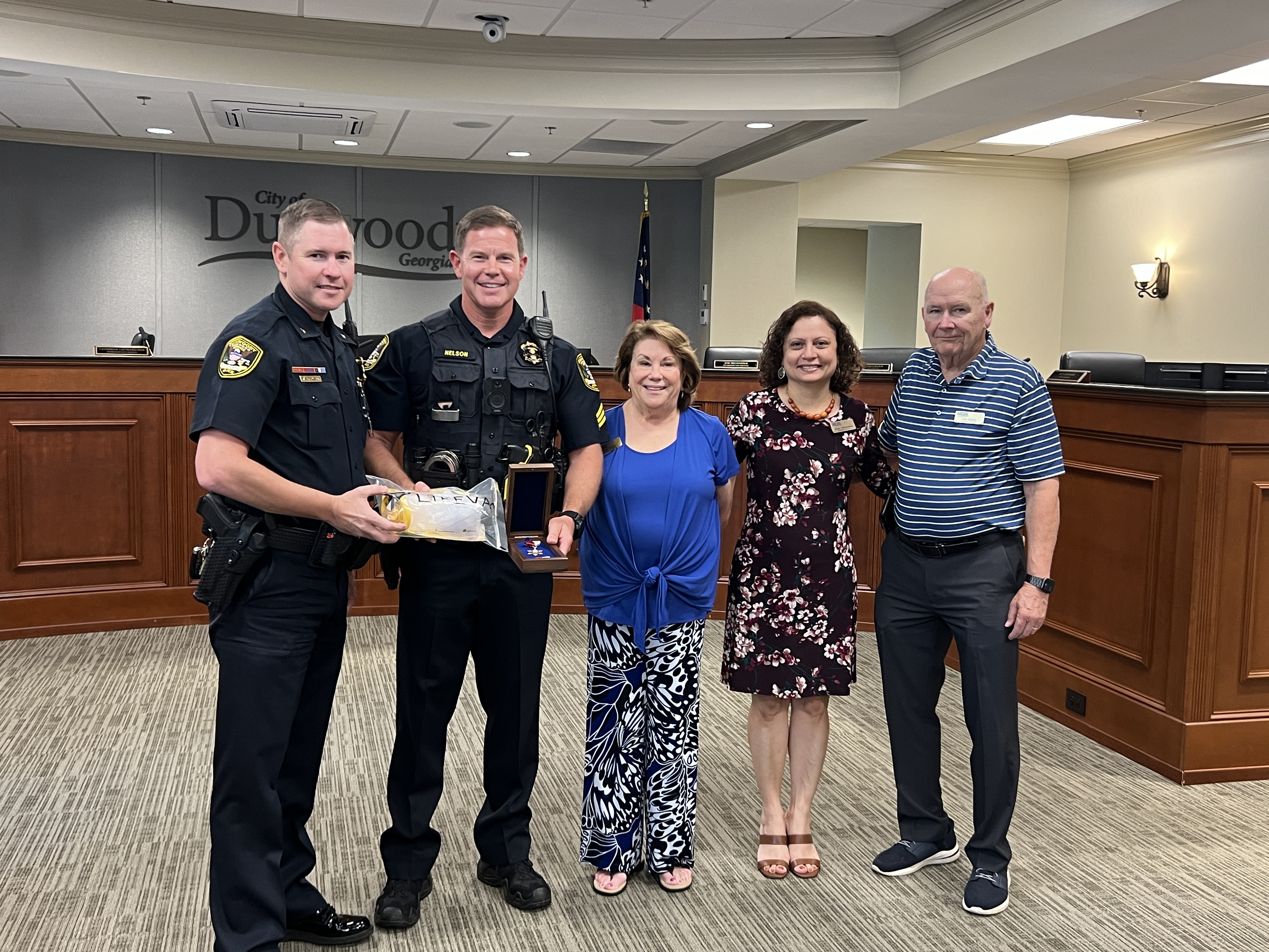 | Dunwoody Police Foundation and Dunwoody Police Department. RCD Rotarians on the Foundation Board include Jim Glass, Fred Brandt, and honorary member, Mayor Lynn Duetsch. the Foundation purchases the devices and dogs. |